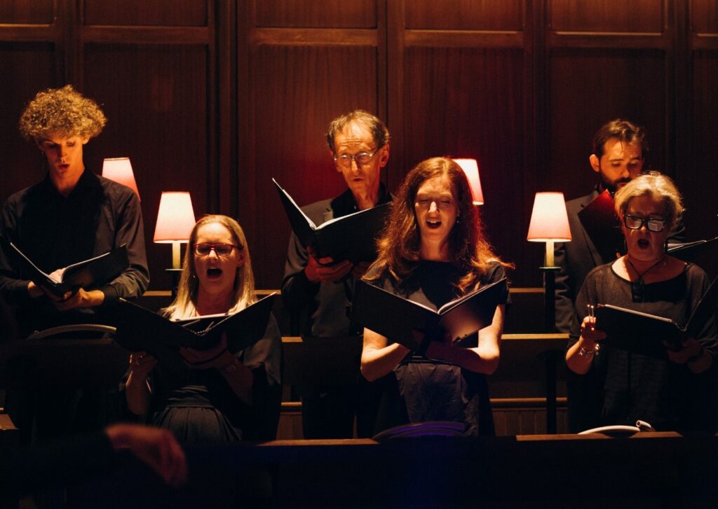 Following his singers was music director Michael Stewart, whose appearance occasioned a withdrawal of tones from the various instrumentalists in favour of eerie, almost spectral percussive sounds, intended to accompany the Consort’s singing of the Prologue – in effect, Lassus’s own sung introduction to his set of Sibylline Prophecies which were to follow. Beginning with the words “Carmina chromatico” , this enchanting episode ( performed by the Consort Voices just as the composer had written) struck me in that instant as the kind of musical “sound” this building was surely created for, as celestial an effect as was the singers fan-like dispersal at the end to both sides, whilst still singing, the sounds augmented by soft percussion and harp in a seamless, dream-like flow!